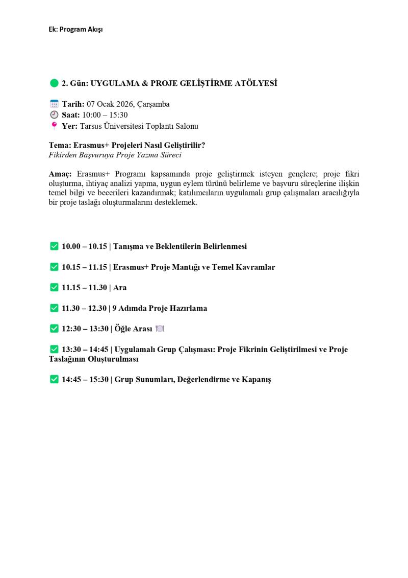 Gençlik projelerine ilgi duyan tüm akademik personelimizin ve öğrencilerimizin katılımı beklenmektedir.